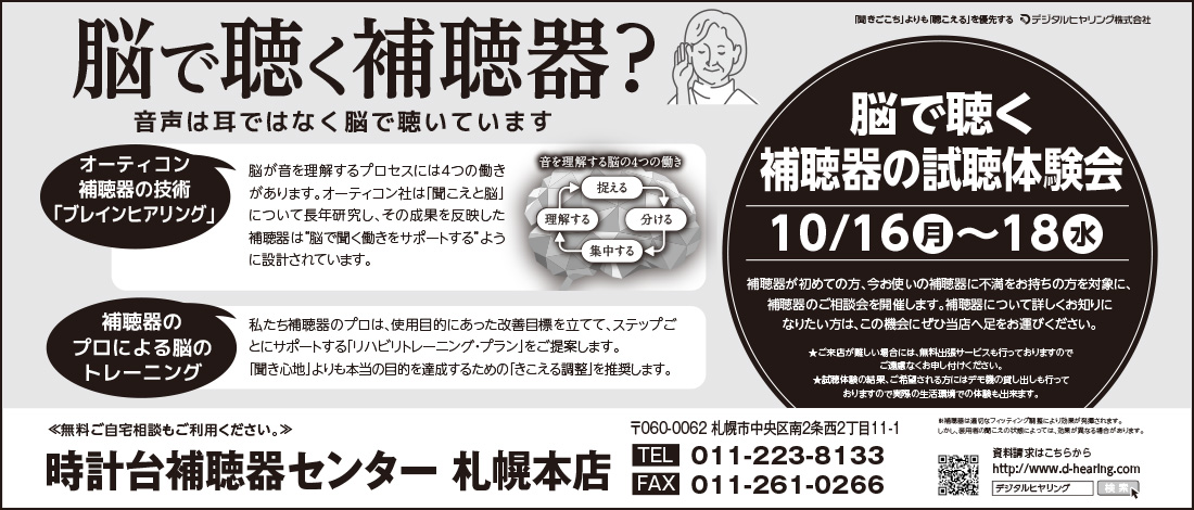 道内各地で脳で聴く補聴器の体験イベントを開催いたします